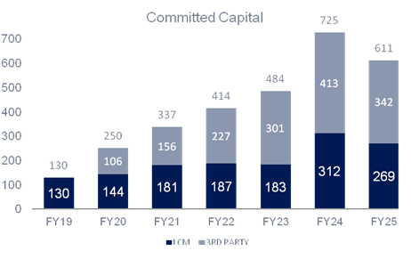 Total new commitments of A$79m added in the period (FY24: A$279m) |