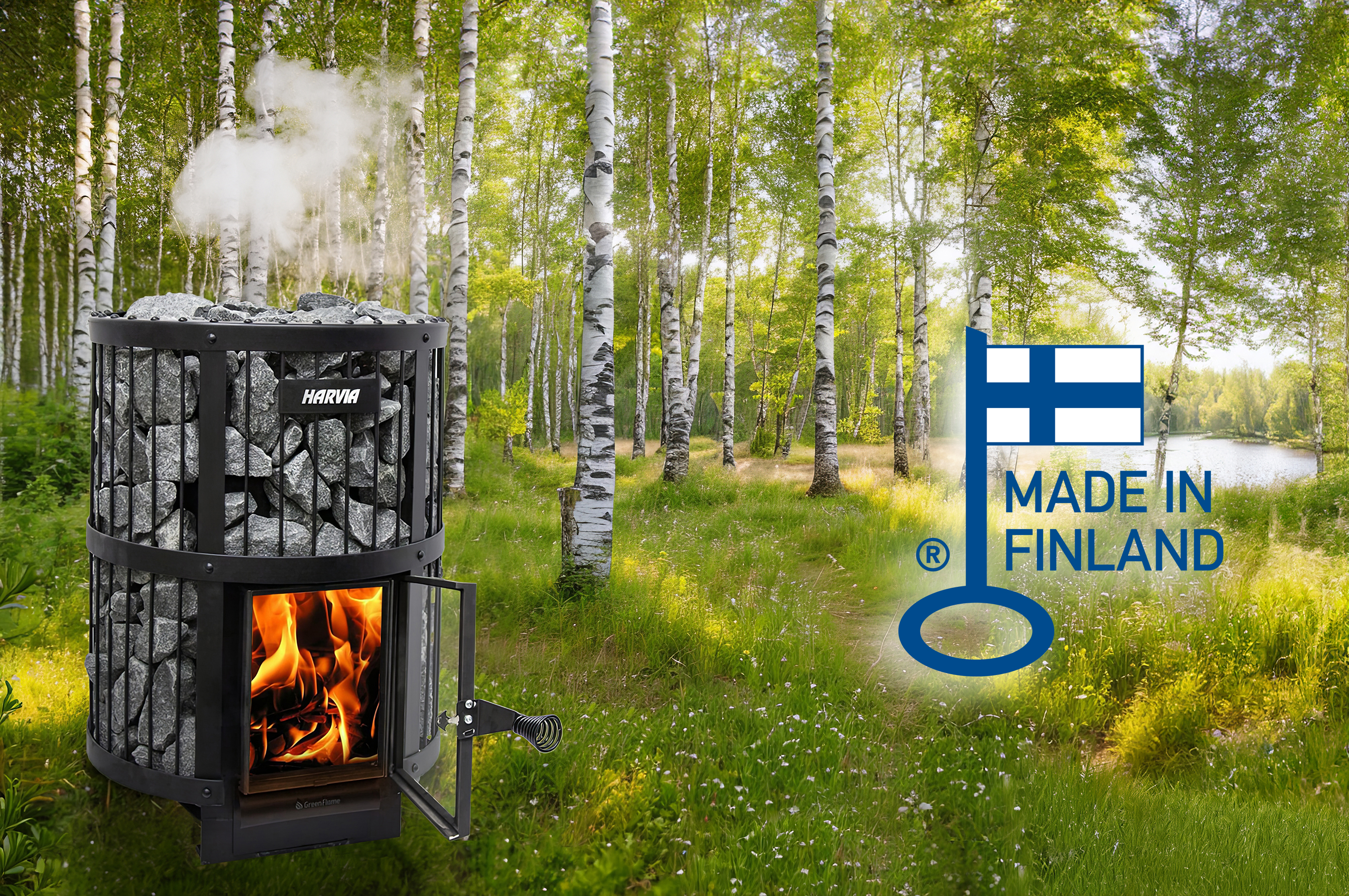 The frame upgrade and advanced manufacturing technology will ensure the heaters' high and consistent quality. Additionally, these enhancements will improve material efficiency, support recycling efforts, and guarantee better delivery times. Harvia's new wood-burning heaters have been awarded with the Key Flag label, which signifies Finnish craftsmanship. This registered label indicates that the product is made in Finland and supports local employment. The Key Flag reliably shows the Finnish origin of the product.