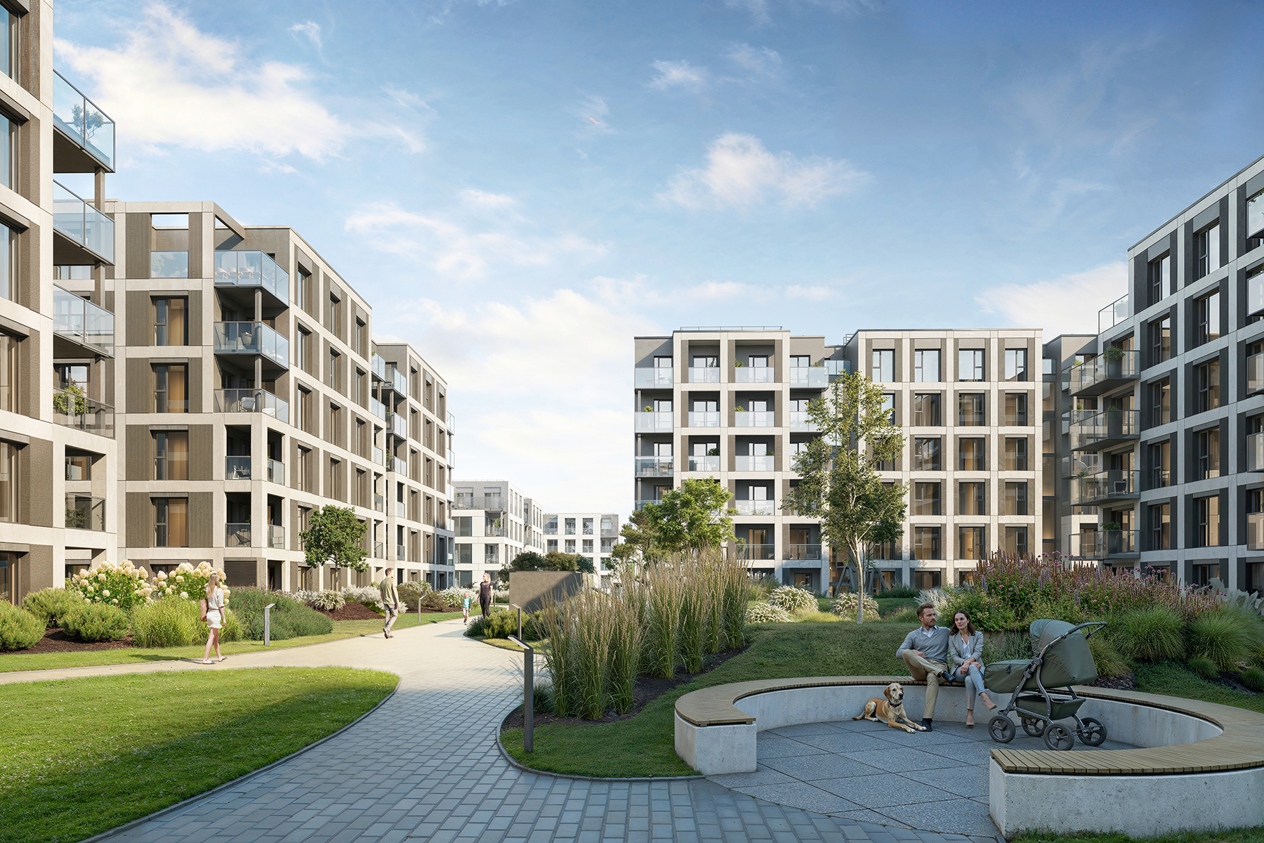 Vilneles Skverai residential quarter comprises in total of 26 new residential buildings with more than a thousand apartments. The buildings will group around a common yard with cozy green spaces, children’s playgrounds and recreation areas. The new residential quarter also includes commercial premises where businesses provide services to residents.